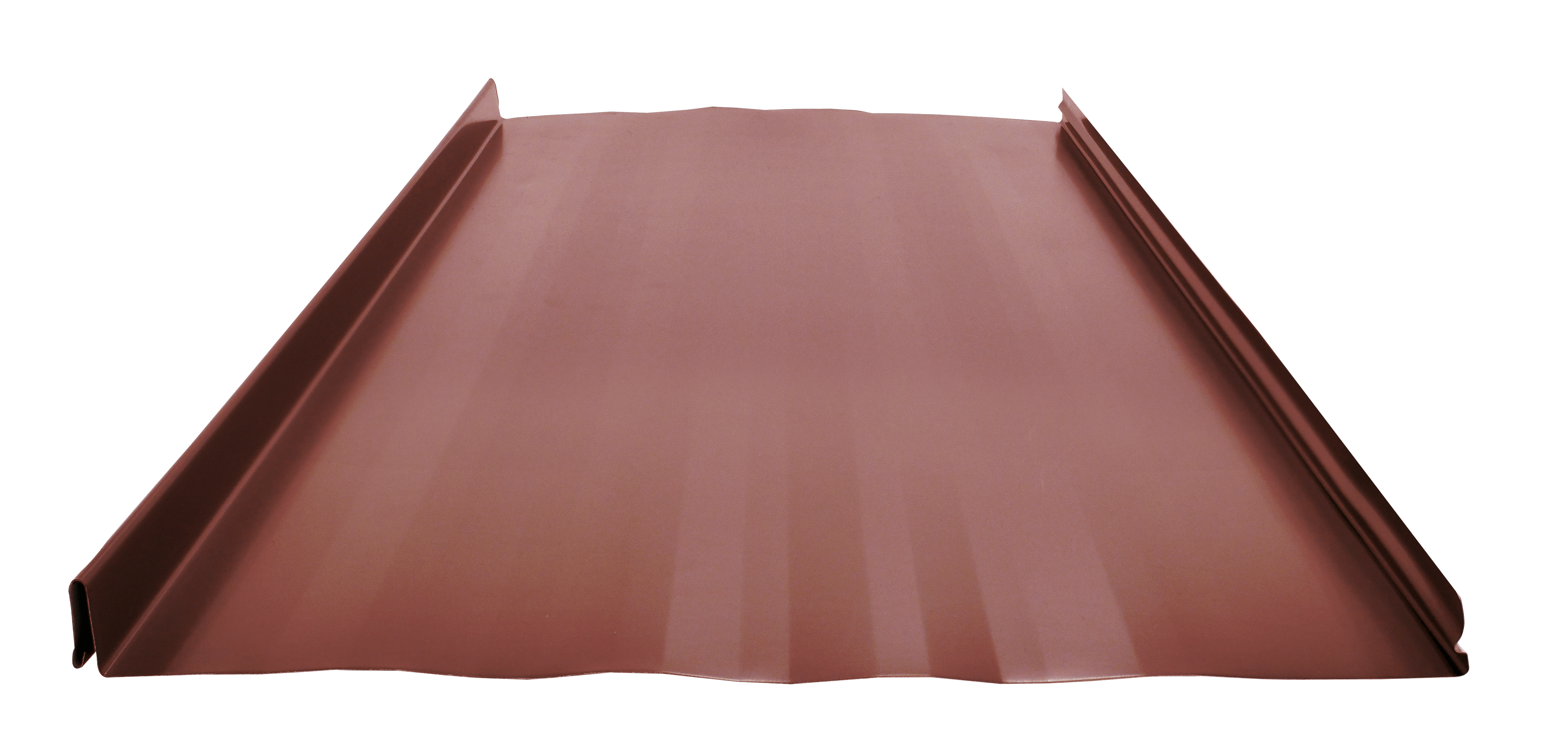 The Everseam® is 20” (+/- 1/4”) wide with a 1 1/2” high seam. The integral locking seam is held in place by concealed metal clips and is installed over a waterproof solid substrate. The absence of exposed fasteners and the weather-tight side lap, allow for applications on roof pitches as low as a 3:12. The Everseam® durability and aesthetic appearance make it an ideal choice for residential roofing applications.